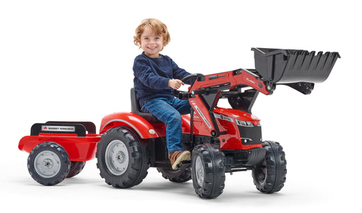Falk Trettraktor Massey Ferguson S8740 rot mit Frontlader und Anhänger