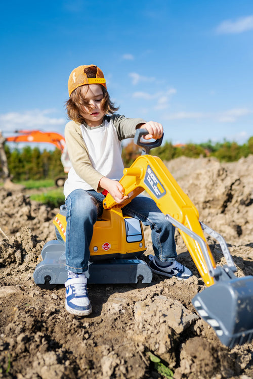 View full detailsBaggerlader Claas mit Reifen, Baggerarm, Anhänger mit Seitenwänden und Lenkrad mit Hupe. Eine getreue Replik des Modells Arion 430. Für kleine Aben...